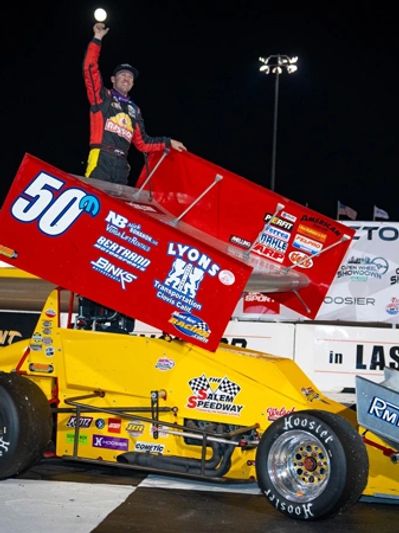 That said, Swanson’s latest success at Salem came in a different manner than each of his past five scores, all of which were 75 laps in length. Saturday’s race marked the first 100-lap USAC event at Salem in nearly 57, dating back to Rollie Beale’s Sprint Car win on the 33 degree high banks in October 1968.
