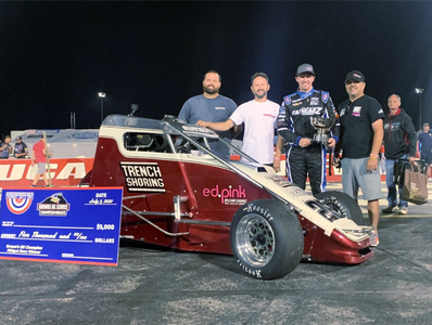 Our third race, the "Independence Showdown," gave us the opportunity to race Midgets in front of a huge crowd with the SRX series in town. Jerome & his Rodela Fab team had the car fast all night, and we scored the "Hot Box Pizza Bounty" for the fans by setting fast time, and winning the 30-lapper from our eighth place starting position. It was a really fun race for me personally, and I was glad to have done a better job early in the race to make up those positions, and get the team the finish they deserved!